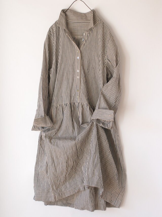 播州織のコットンリネンでお作りしましたシャツワンピースです。