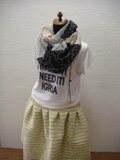 夏素材でモノトーンカラーのものを探していて、作品の到着を見たら・・両方とも予想を超えていました。 やっぱりお願いしてよかった!! 夏に程よいボリューム感で、巻き方や生地の見せ方で色んな表情が付けられるし、更にボタンと隠しロープで絶妙なニュアンスが出ます。 オリジナリティーあふれるデザインと生地のチョイスがいつも大好きです、これからも宜しくお願いします。