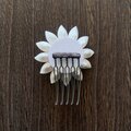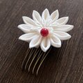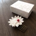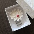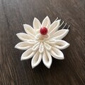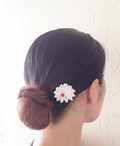生成りのような柔らかい白色の正絹でお作りした「つまみ細工の髪飾り」です。