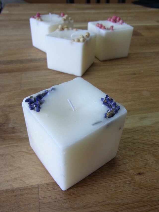 コロンとしたキューブ型がかわいらしいキャンドルです♪