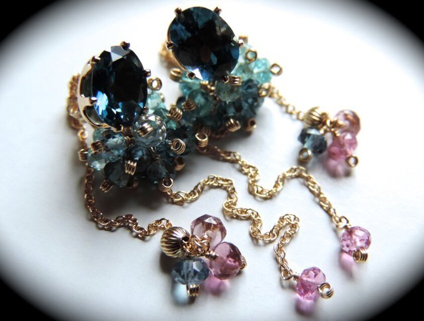 ~ K14GFロンドンブルートパーズ&マルチストーン2WAYピアス ~