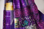着物をリメイクして、ウエストゴムのパッチワークスカートを作りました。