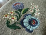 刺繍はミシン刺繍。表地は綿麻、裏地は生成りの綿麻生地です。