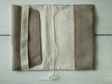 刺繍はミシン刺繍。表地はリネン20% 綿40% ポリエステル40%、裏地は生成りの綿麻生地です。