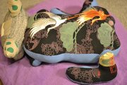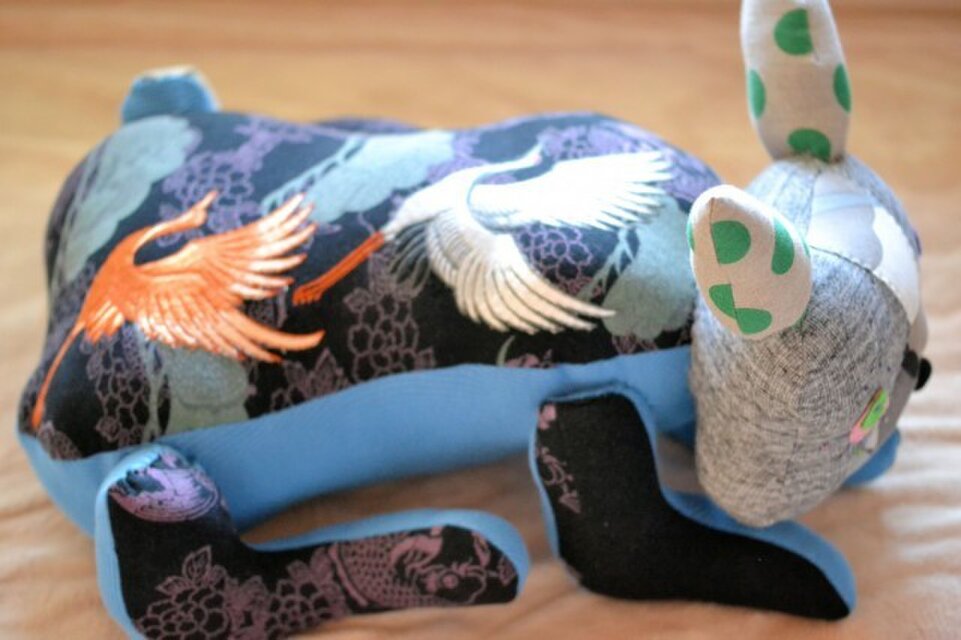 背中の刺繍の鶴がインパクト大の和モダンなぬいぐるみです。