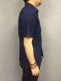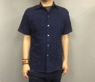 吉兆藍木綿半袖シャツ(蜻蛉紋様)