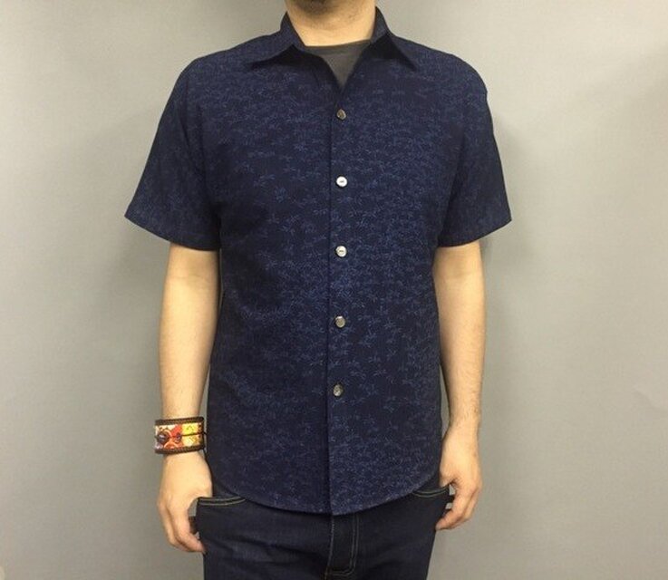 厚手の吉兆藍木綿を粋なシャツへと仕立てました。