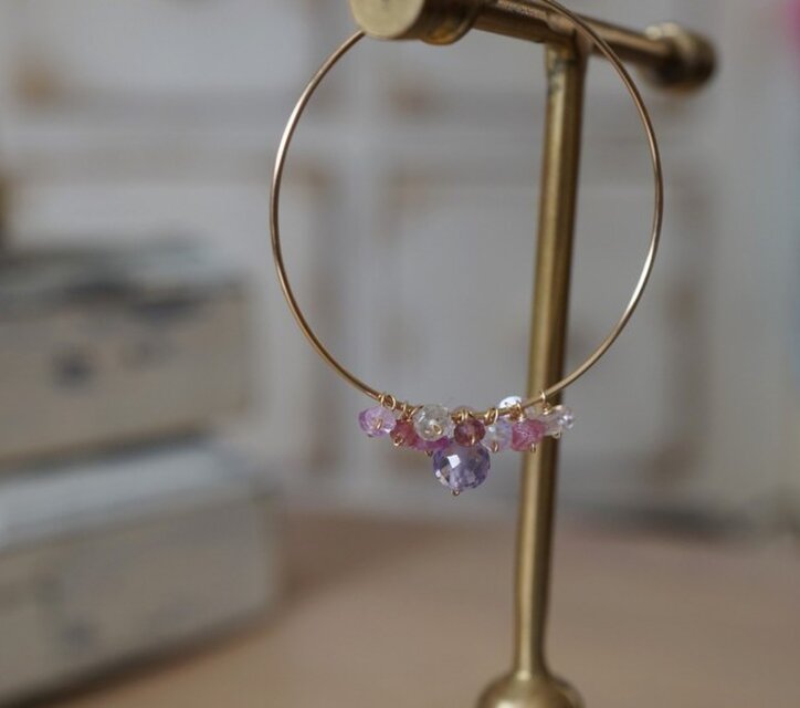 ピンクアメジストをメインに、サファイヤなどの小さな石をたくさんつけて