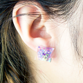 菖蒲を彷彿とさせるカラーリングに虹色を纏った絶妙なピラミッドピアス。