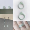 シャープにカットされた少し透き通るソフトグリーン色のビーズと、クリア色のビーズの組み合わせが、爽やかに着けて頂けるリングです。