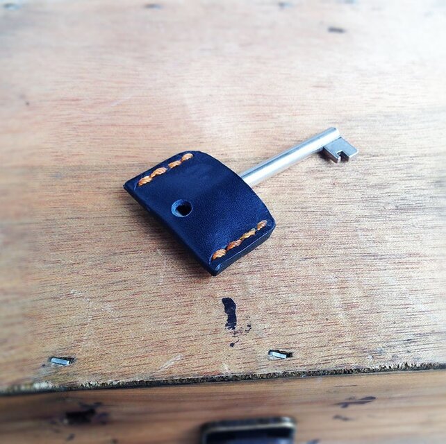 ここちよい手触り、本革鍵カバー 濃紺と橙ステッチ