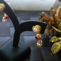 キャッチにルビー色のスワロフスキーとパールを取り付けてあります。