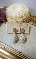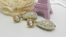 こちら、ティアドロップ型のオフホワイトカラーのドイツビーズとスワロ(クリスタル8㎜)を使用いたしております(^-^)