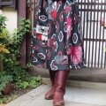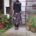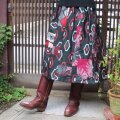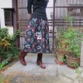 赤と黒でモダン♪銘仙リメイクスカート♪おしゃれな大人の方に