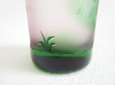 *素材はピンク地に緑色の2色の外被せのガラスを使用しています。2色は少し高価になります。(切子で使用しているものです。)