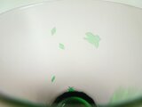 *緑色のガラスを砂で削っていくことで模様を表現していきます。