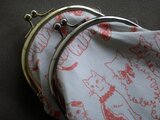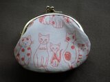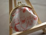 おすまし猫が整列した可愛らしい生地で小さめのがま口を作りました。