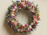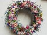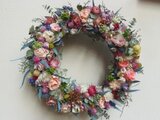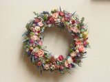 こちらのリースはプリザーブドフラワーとドライフラワー素材を使用しています。