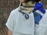 ◆銘仙のはぎれに手刺繍を入れたブローチです。