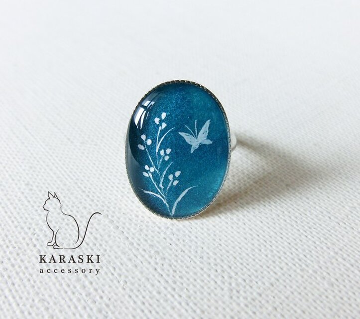 手描きのオリジナルイラストをレジンで閉じ込めたゆびわです。