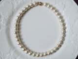コットンパール(カラー:キスカ12㎜)、バラモチーフクラスプ、ビーダロン7ストランドワイヤー(Mサイズ:とてもしなやかで柔らかく、丈夫な素材です。)、フレンチワイヤー、つぶし玉など(金具はメッキ製)