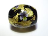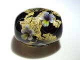 黒の地に金箔をたっぷり入れ、ガラスで作ったすみれの花を咲かせました。