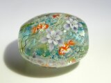 花と金魚は表面に描いたのではなく、ひとつずつパーツを作り、溶かしたガラスに埋め込みながら制作しております。