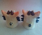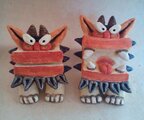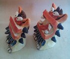 一対の漆喰シーサー。 雄/ 13.0 ×11.5 ×11.0cm。 雌 /12.0 ×11.5 ×10.0cm。
