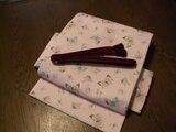 蝶模様の桜色の木綿名古屋帯です。