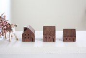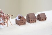 ヨーロッパの民家をモチーフに、無垢の木から削りだして小さな木の家を作りました。
