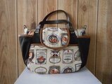 3WAYバッグ♪いちごラベル柄(ベージュ)×こげ茶帆布