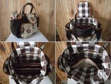 表地にキルト綿を縫いとめ、内布は麻混チェックを使用しています。