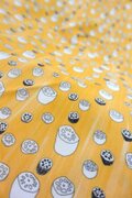 ぱきっとしたイエローの上を、れんこんが駆け抜ける!