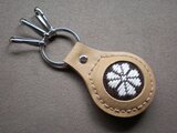 こぎん刺しをしたつつみボタンを覆っている部分の素材は合皮です。