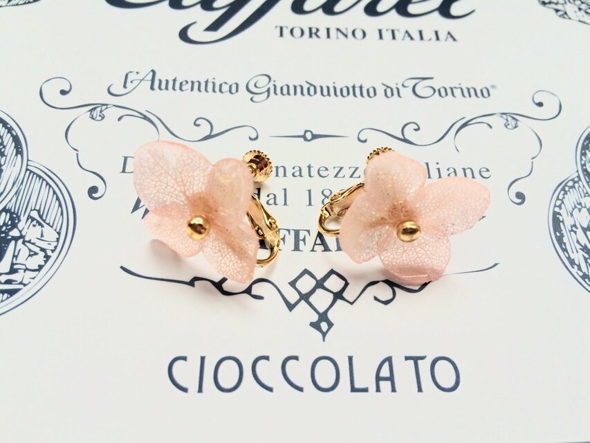 ブリザードフラワーを樹脂加工してイヤリングに仕上げました。