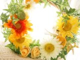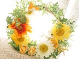 グリーンと明るい黄色のお花がいっぱいのリースは春の森のイメージ