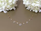 ボールカットのホワイトオニキスと極小の淡水パールをつなげて作った、花の鎖のネックレス。