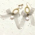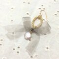 素材:オーガンジーリボン・淡水パール・ゴールドメッキ・レジン