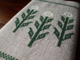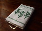 刺繍はミシン刺繍。表地は綿100%、裏地は生成りの綿麻生地です。