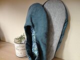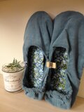 柔らかな細うねのコーデュロイを表裏に使用し、中底はリバティ(タイガーリリィ)、底裏はフェルトになっています。