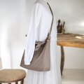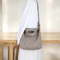 落ち着いたグレーベージュの11号帆布で、2wayショルダートートバッグを作りました。