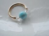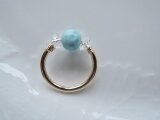 ☆久しぶりに綺麗なラリマー丸玉を入手する事が出来ましたので、水晶のボタンカットと合わせて14kgf製の指輪を作りました♡。(ペクトライト:硬度4.5~5:7丸玉AAAAA)