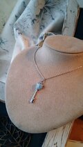 ハートカットのかわいいミルキーアクアマリンを鍵チャームにセットしたネックレス。