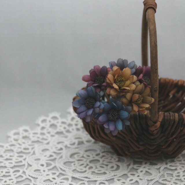 Alice's Adventures in Wonderland(不思議の国のアリス)をイメージしたお花で小さなコサージュを作ってみました。