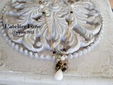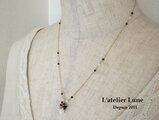 真白なホワイトオパールにブラックスピネル、青いシラーの見えるグレーのラブラドライトをあわせ、大人っぽいネックレスを作りました。モダンな色合いなのでシンプルに普段使いにお使い頂けます。チェーン部分にも同じ色をリピートしまして特別感を出しています。