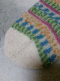 つま先、かかと、履き口は同じ毛糸のオフホワイト使用。