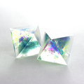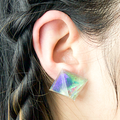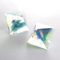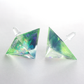 ブルーとグリーンや偏光のカラーとオーロラをクリスタルレジンで閉じ込めたピラミッド型のピアスです。