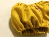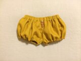 マスタード色のリネン作った1枚仕立てのバルーンパンツです。適度な張りと厚みのある生地なので、活発なお子さんにもぴったりです。