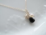 こちらは、宝石質ブラックスピネル(約8×6㎜:ペアシェイプブリオレットカット)、淡水パール、14KGF製チャームなどを使用して作製致しました、『着せ替え用:ネックレスチャーム』でございます。(ネックレスは、別売です。チャームのみの販売となります。)