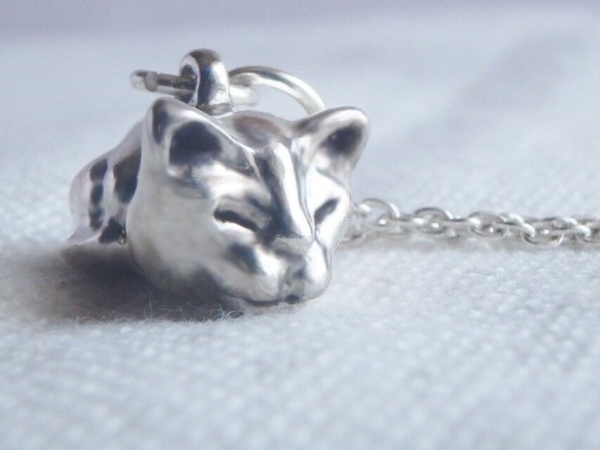 ぐっすり眠っている猫のネックレスです。立体的に作っていますのでいろいろな角度から